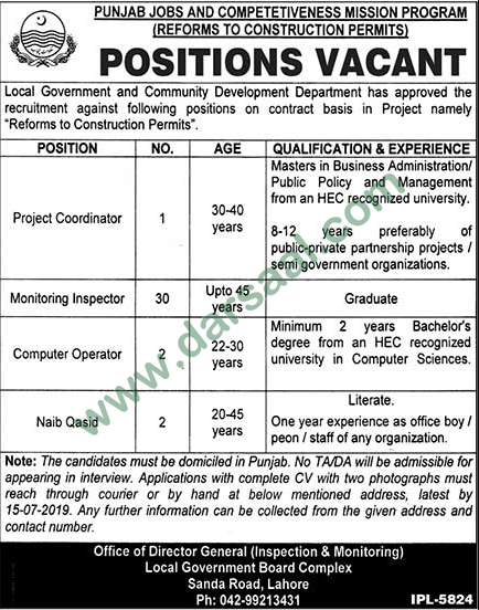 Computer Operator Jobs In Punjab Local Government Community Development Department In Lahore 28 Jun 2019 Darsaal